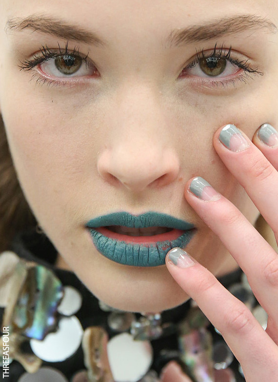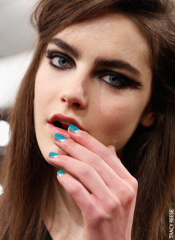 Por fim, a Charlotte Ronson transportou a tendência do P&B para as unhas, com uma manicure totalmente diferente de tudo que eu já tenha visto…pintada de branco, a unha vem com uma “moldura” preta! Bastante artístico, mas gostei da proposta e do visual que a unha provoca!